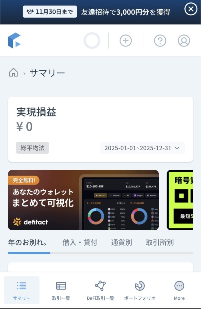 日本の税制に合わせて作られており、ウォレットや取引所の履歴を読み込むだけで 年間の損益を自動で計算 できるのが最大の特徴です✨