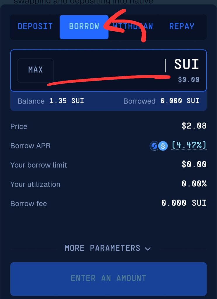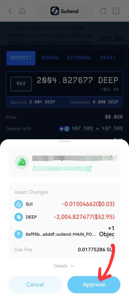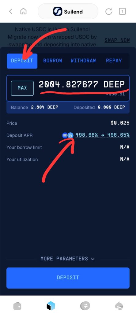 先程、SUIをウォレットに入金して試してみたところ、無事にレンディングできました!