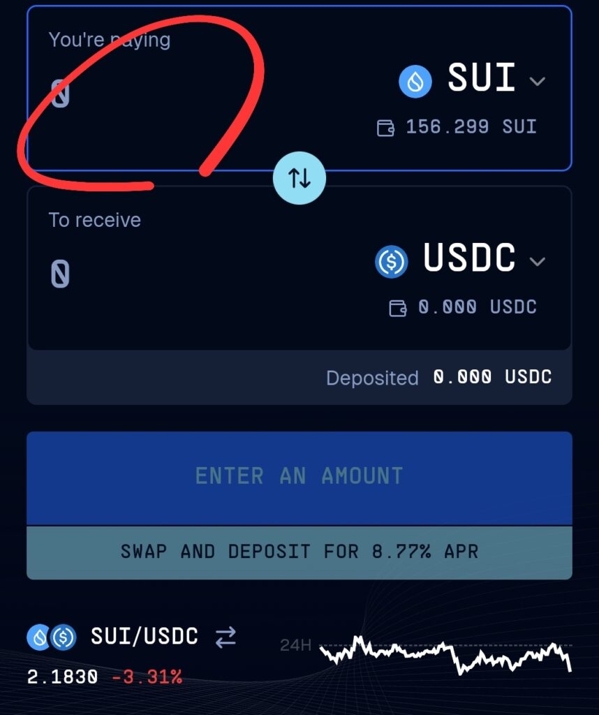 基本的にSUIチェーンのDeFiに出し入れする際はSUIが必要になります!